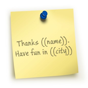 For this example we will assume you have name and a city that you want to include in a single image. It is easy to do in your image text, by using FIRSTNAME and {txt2}. Check it out in action: